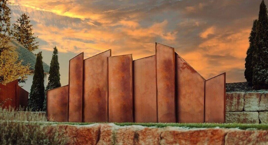 Auch Kletterpflanzen profitieren von der Witterung des Stahls. Die raue Oberfläche von Edelrost gibt feinen Ranken guten Halt, auch wenn sie bei sehr heißen Temperaturen im Sommer kämpfen müssen. Wer eine Sichtschutzwand begrünen will, sollte darauf achten, dass die Pflanzen den Stahl nicht komplett verschlucken. Der Kontrast macht den Reiz aus. Lass dem Metall Raum, um zu atmen.