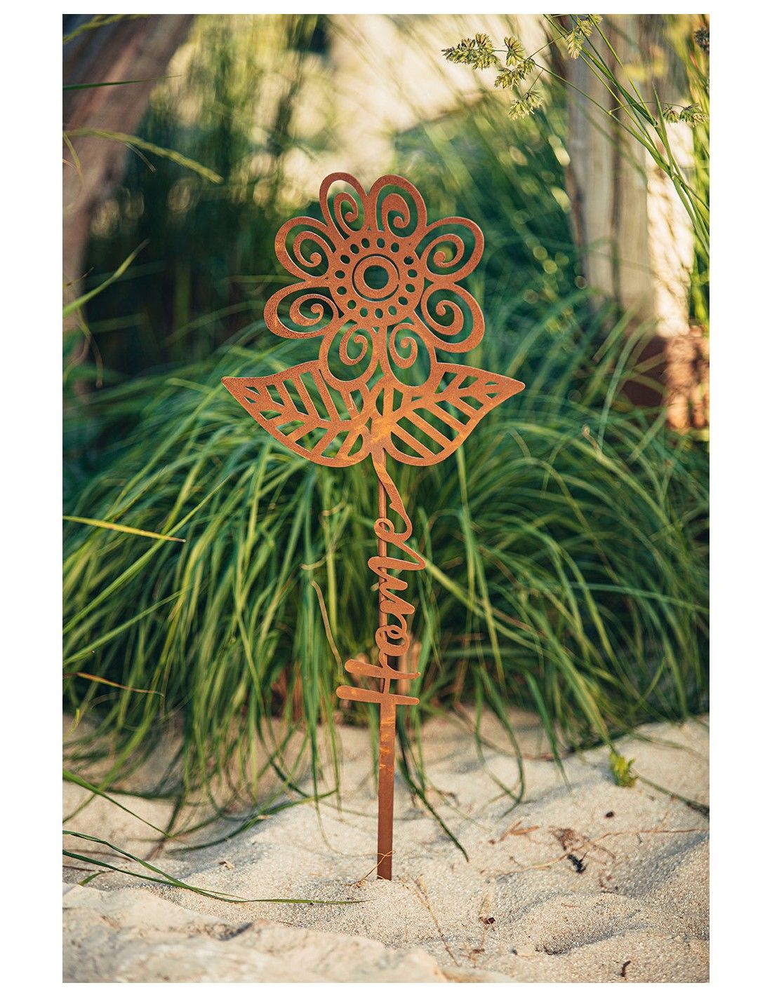Blumen Gartenstab aus Edelrost