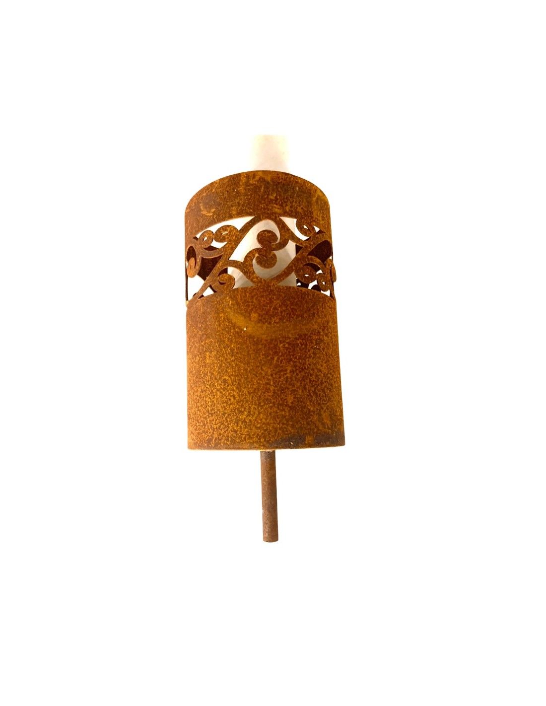 - Das Windlicht im italienischen Stile hat unten eine Hülse angeschweißt, bei dem du eine Eisenstange hereinstecken kannst. So wird das Windlicht schnell zum Gartenstecker. Alternativ kannst du das Gartenwindlicht mit der Hülse auch an einen Balken oder einen Zaunpfahl befestigen.