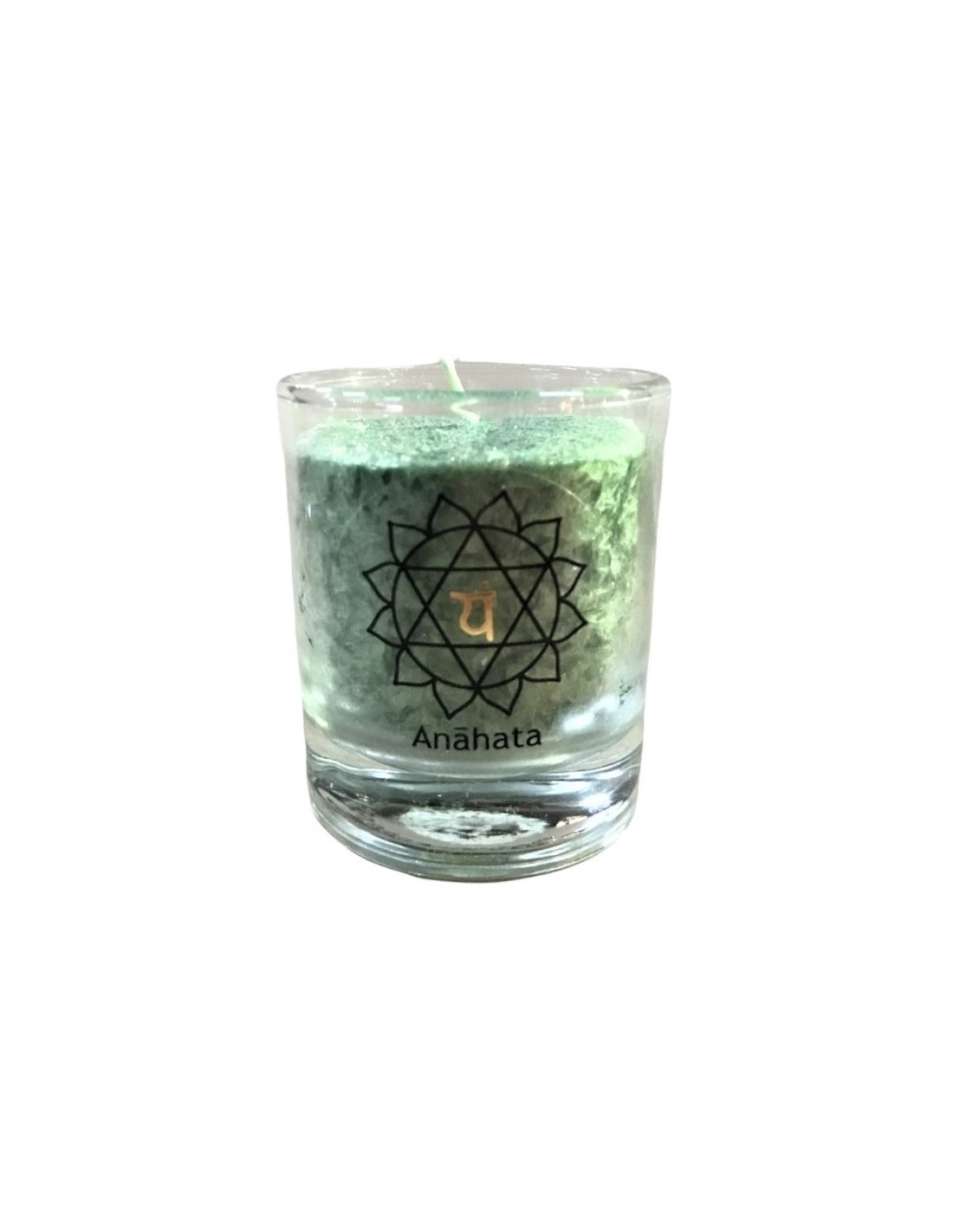 Glück CHAKRA Kerze Heilung - Grün - klein ca. 6 cm - Kerze im Glas - Palm Light Die grüne Chakra-Kerze mit der 12-blättrigen Lot