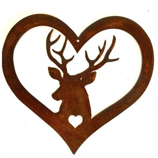 Deko Hirsch im Herz zum Hängen - Höhe 25 cm - klein