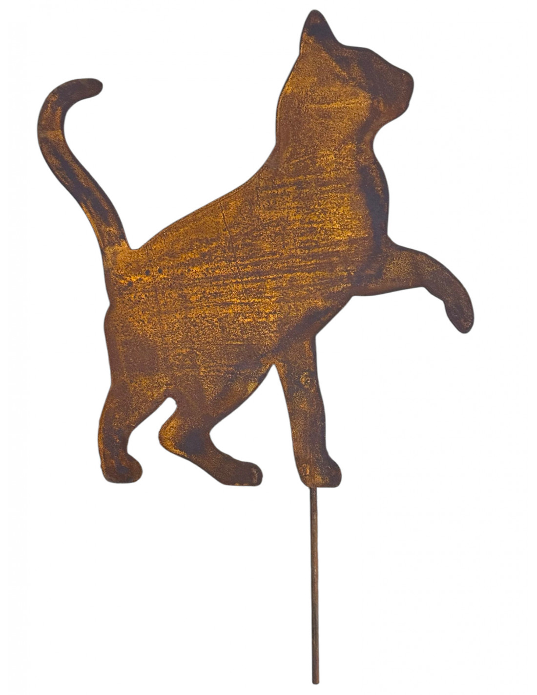 Deko Katze mit erhobender Pfote auf kurzem Stab - Höhe 39 cm