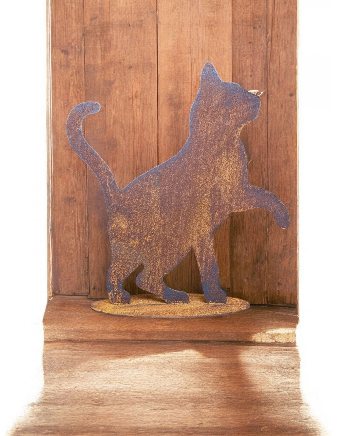 Deko Katze mit erhobener Pfote - auf Platte - Höhe 39 cm