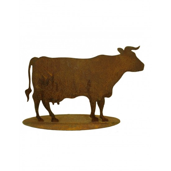Auf einer Platte befestige Edelrost Kuh seitlich stehend ohne Glocke, in mittelgroßer Ausführung, kann super in jeden Garten gestellt werden!