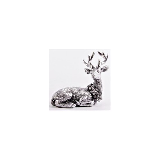 Stilvolle Dekofigur Hirsch liegend aus Metall - silbern glänzend