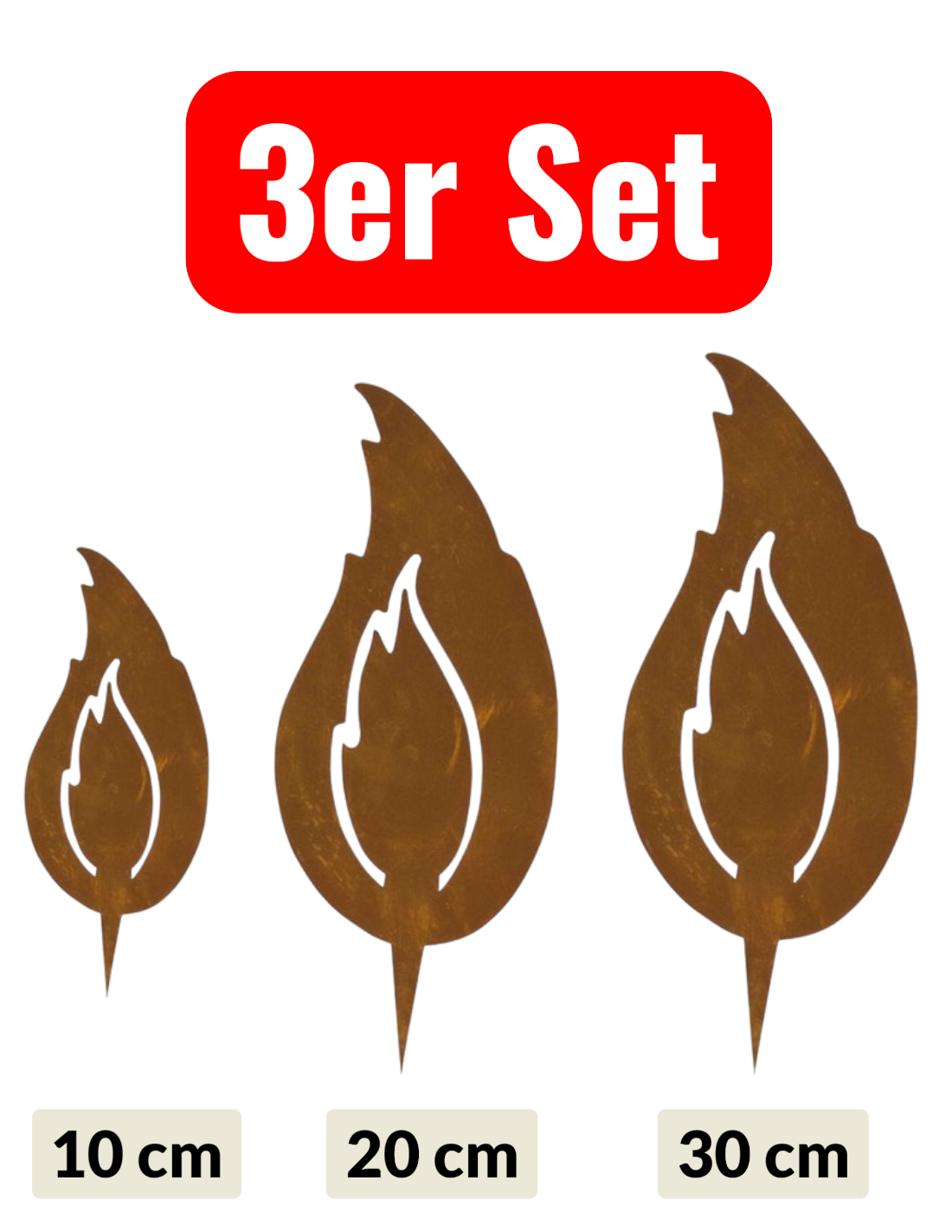 Edelrost Flamme 3er Set - Rost Flammen je 1 x 10 cm - 20 cm - 30 cm