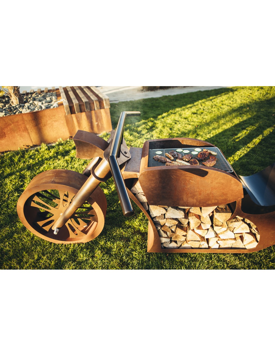 Grill - Motorrad - Länge 260 cm - Biker Grillstelle - Exklusiver Grill für echte Rocker und Harley Fans