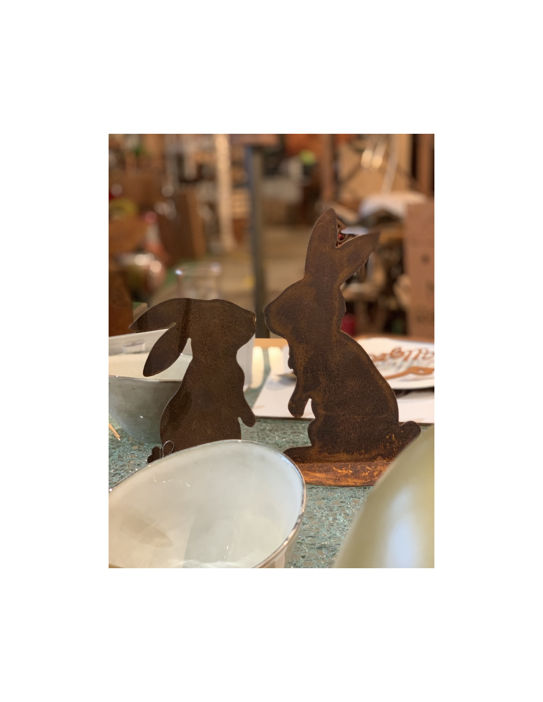 Edelrost küssender Hase mit Ohren aufgerichtet Höhe 25 cm - Dekoration für Ostern