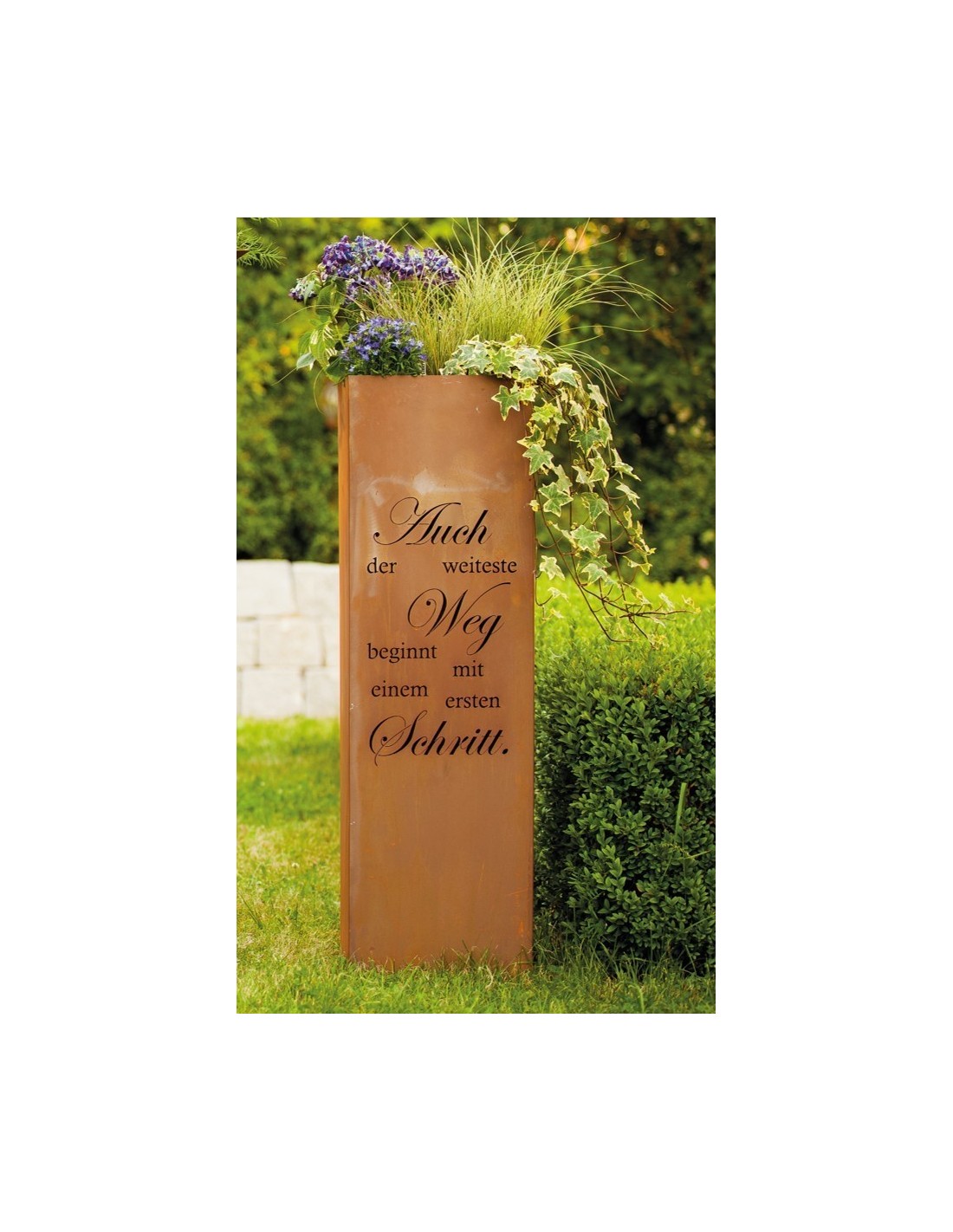 Rostige Pflanzsäule mit Spruch - Auch der weiteste Weg beginnt mit dem ersten Schritt