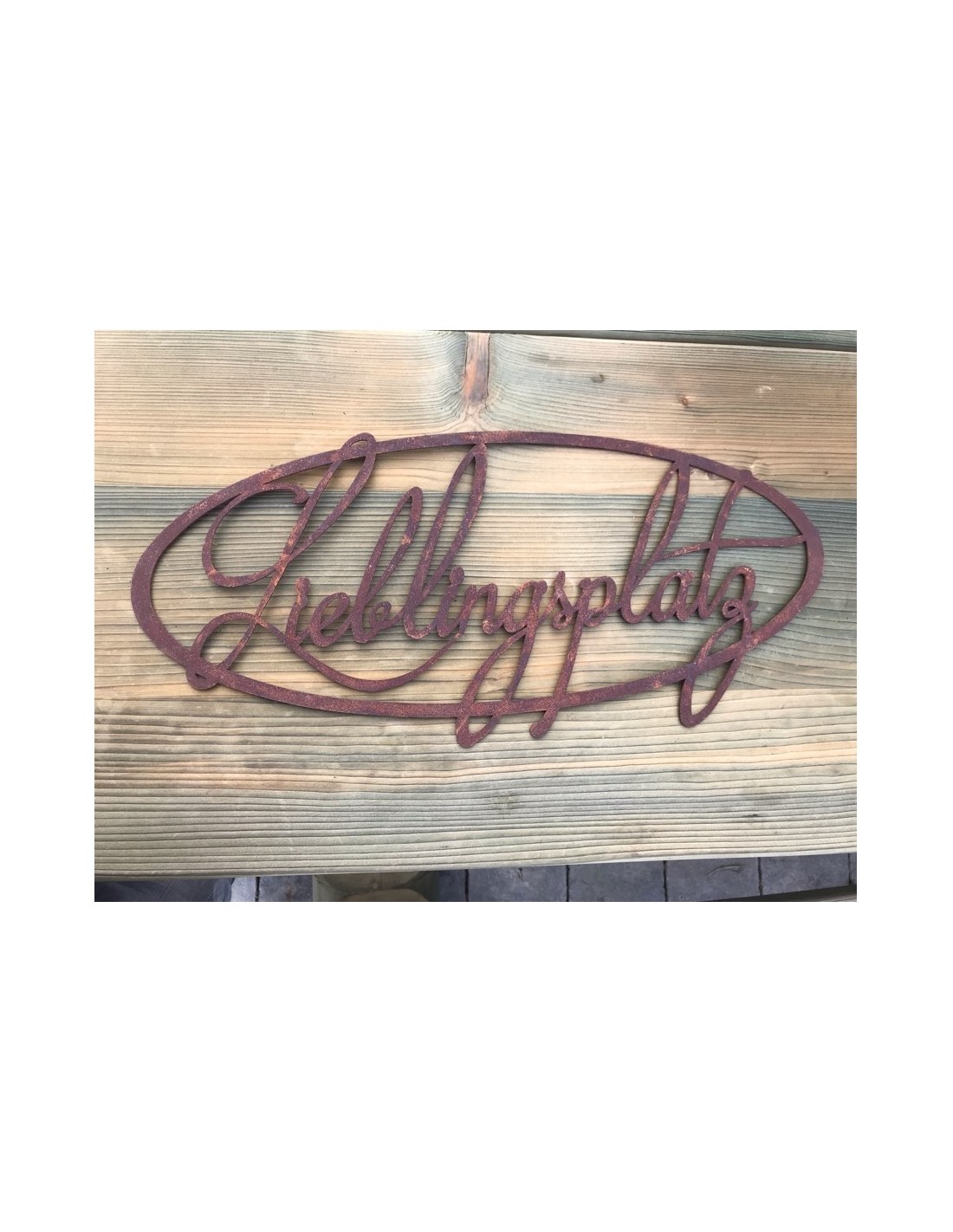 Edelrost Schriftzug "Lieblingsplatz" aus Metall oval
