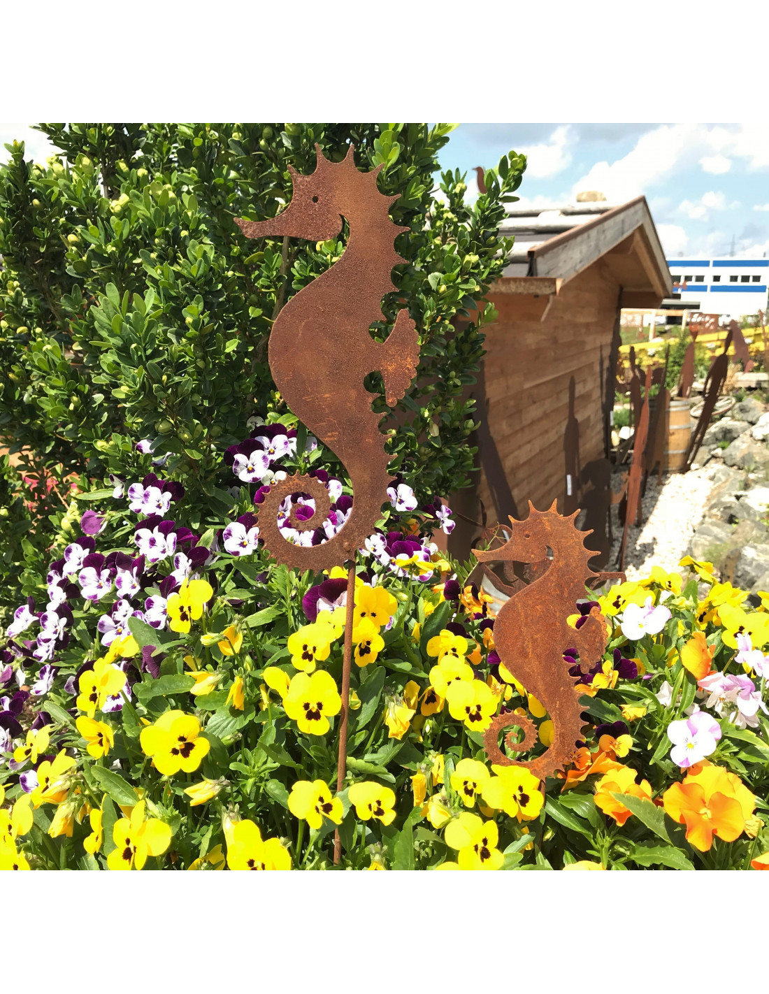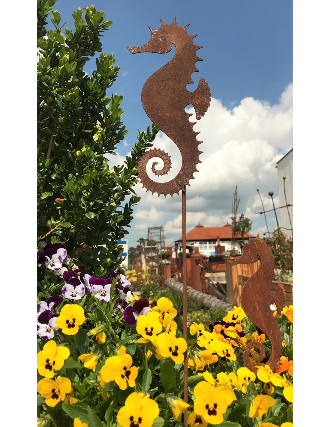 Der Edelrost Topfstecker Seepferdchen ist ein wunderschönes Rostdeko Accessoire für Ihren Garten- oder Wohnbereich. Ideal für Balkon, Terrasse, Fensterbank: Er ist ein absoluter Blickfang für Seetierliebhaber und eine prima Geschenkidee.