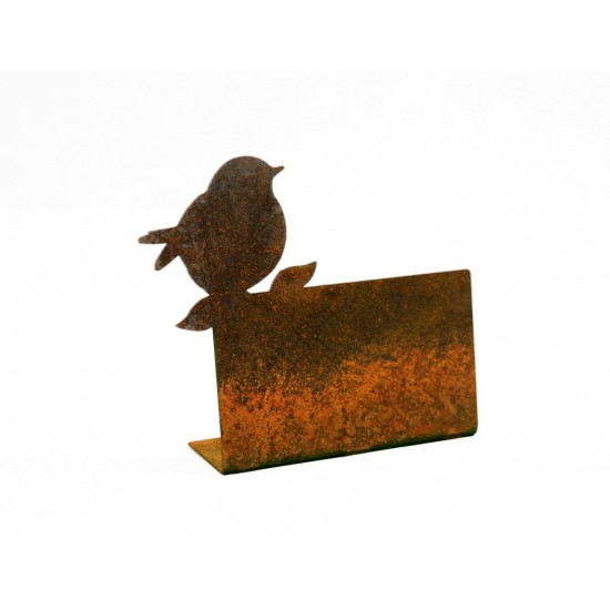 Edelrost Tischkarte mit Vögelchen oben links, zum selber Beschriften, Höhe 7,7 cm Breite 9 cm - tolle Tischdeko