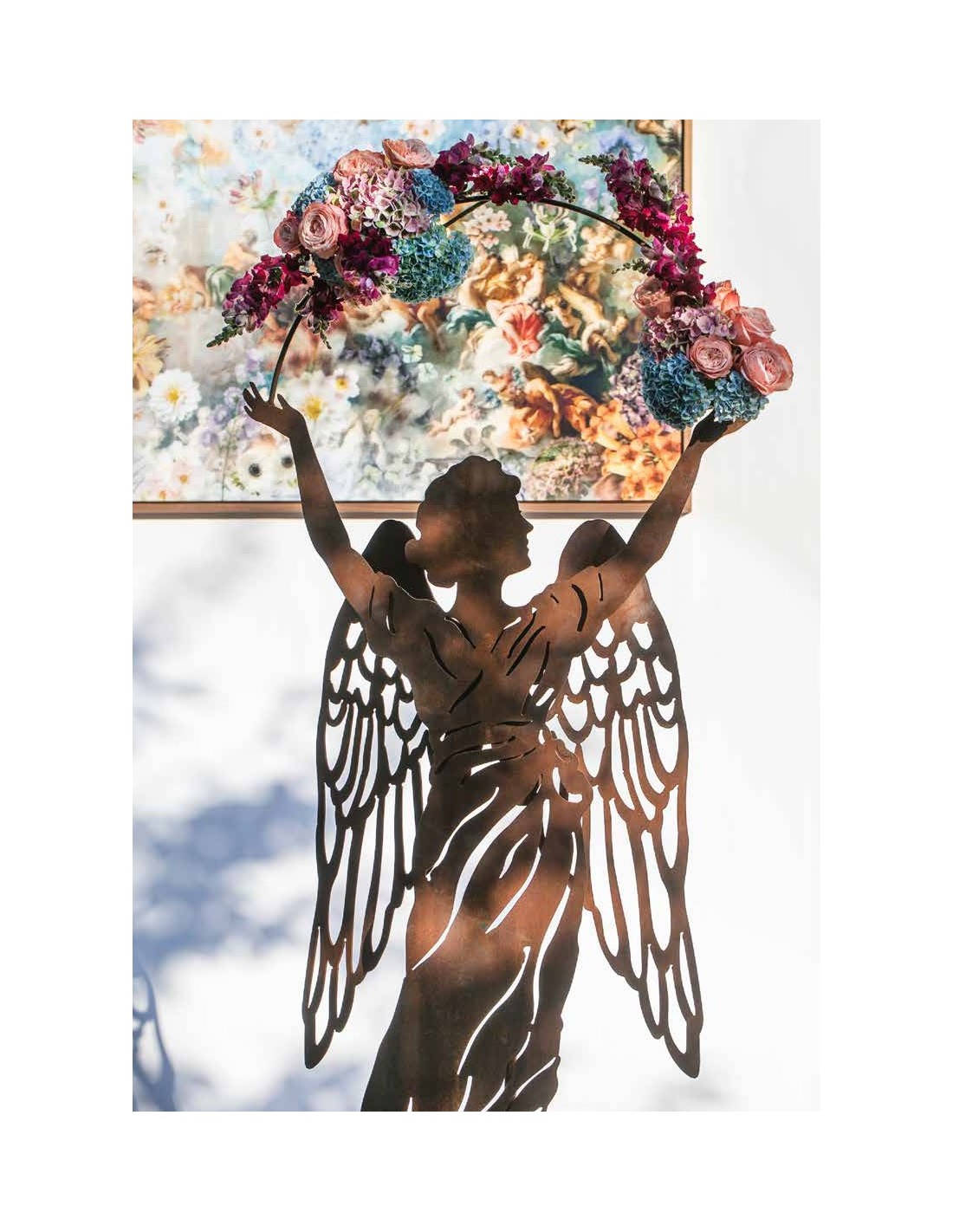 Engel mit einem Halbring und aufgesetzte Flügel sorgt für einen 3D-Effekt, schön zum Schmücken mit Blumen oder mit einer Girlande. Die Flügel, perfekt zum Beleuchten!