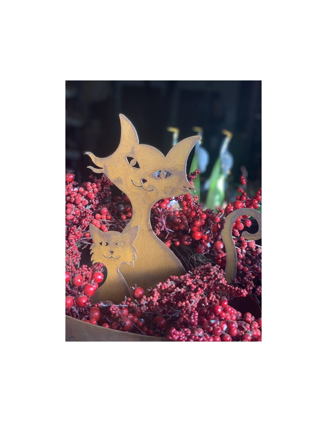 - wie eien ägyptische Katze schaut die Mama und das Katzenkind dich direkt an. Diese schöne Gartenfigur aus Rost hat ein modernes und künstlerisches Design. Die Katze mit Kind passt wunderschön in einen modernen Garten.