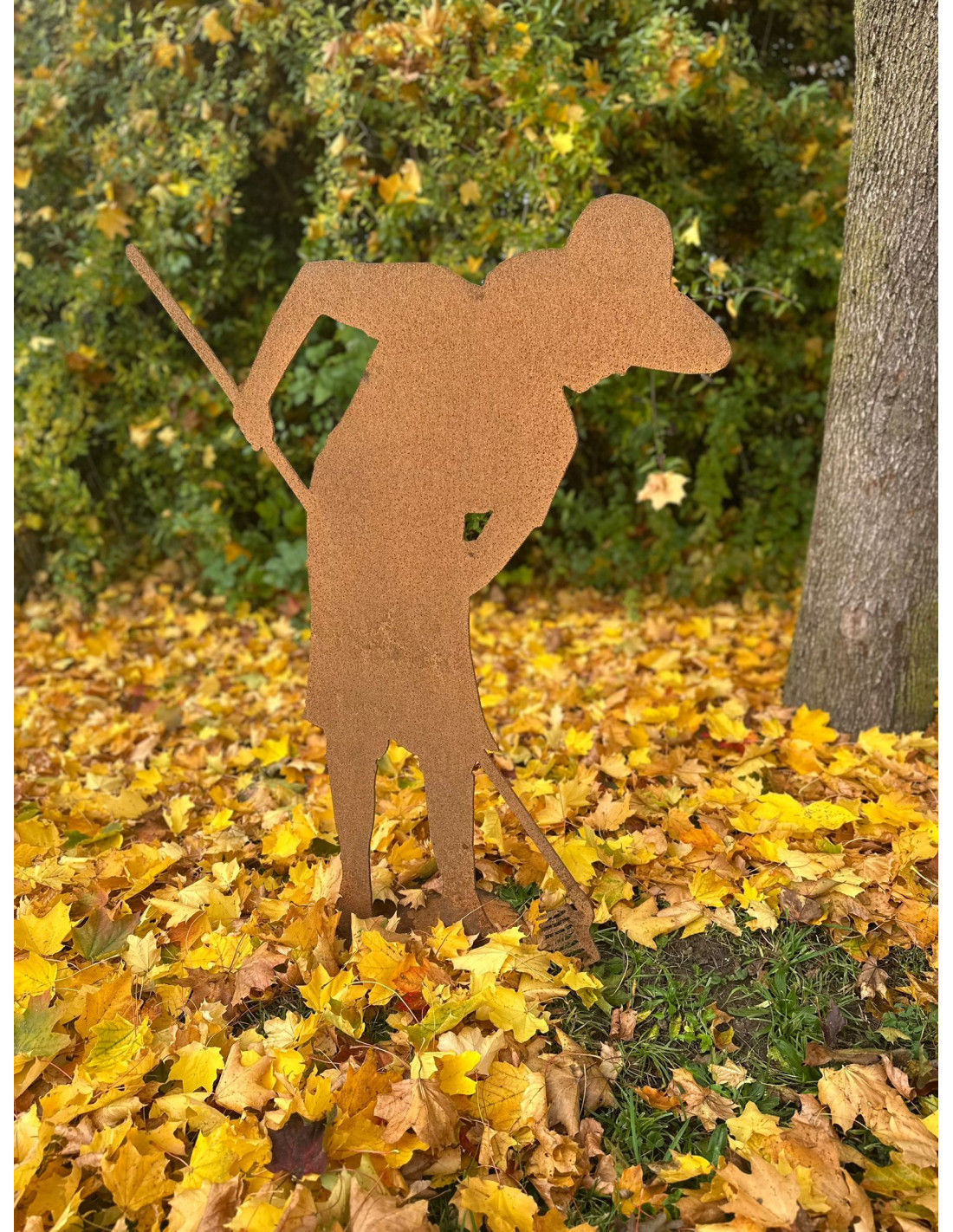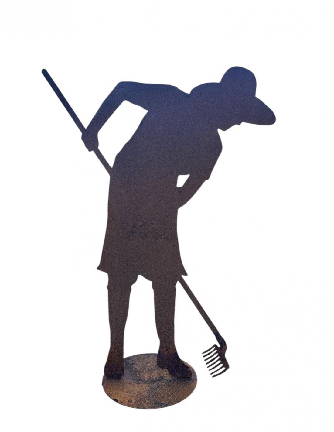 Gärtnerin Figur - Flora - mit Rechen - Höhe 105 cm - auf Platte