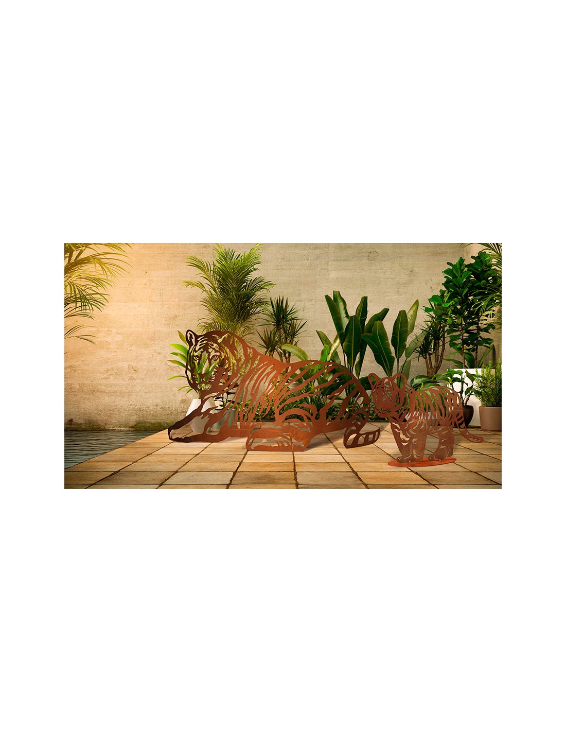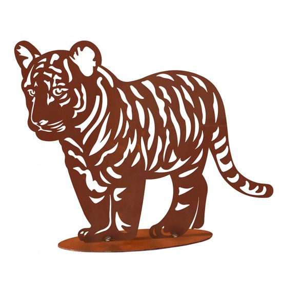 Kleines Tigerbaby als Gartenfigur aus wetterfestem Metall mit Edelrost