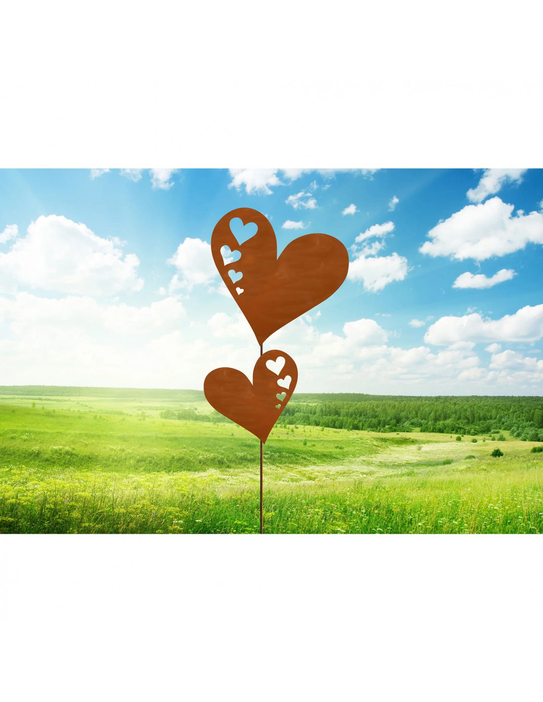 Gartenstecker - 2 Herzen mit Herzausschnitt - 24 cm
