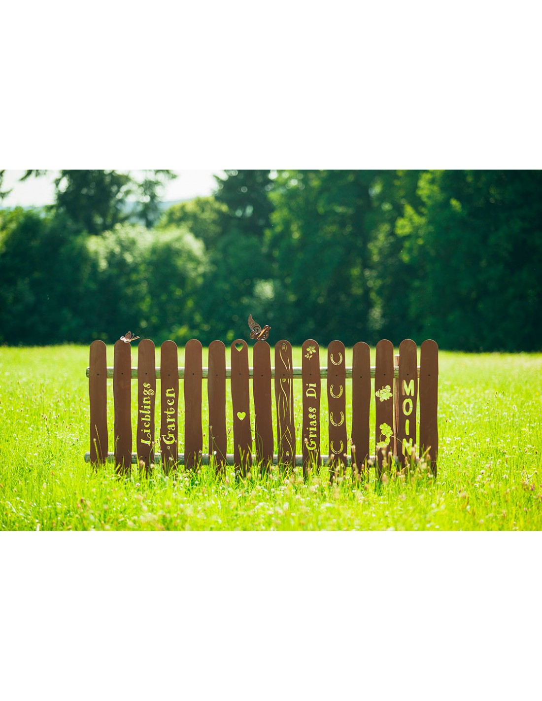 Gartenzaun - Metall Zaunlatte mit Biene und Blume - Höhe 90 cm