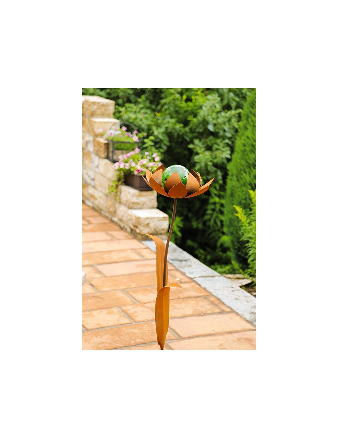 Edelrost Glasblume Sybille inklusive gelber Glaskugel