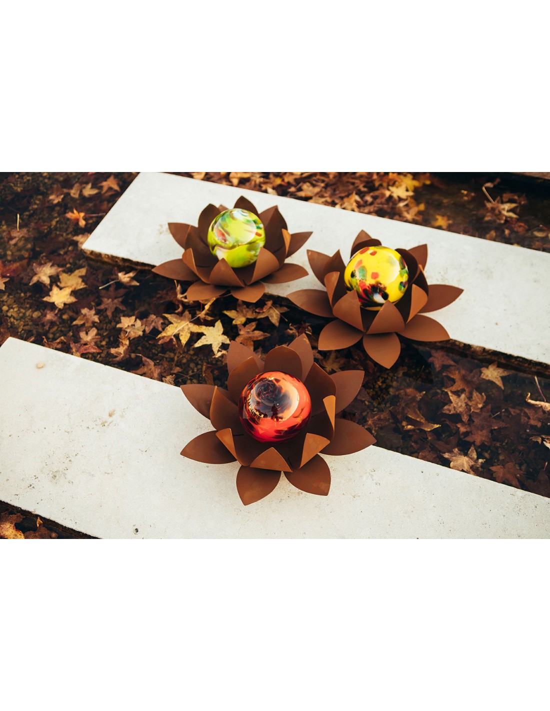 Große Edelrost Seerose inklusive gelber Glaskugel