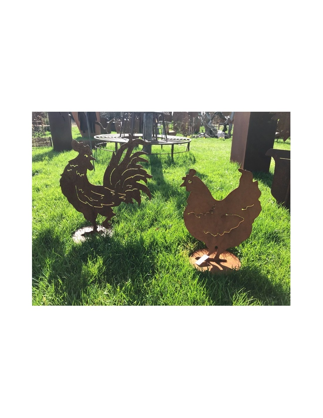 Rostiger Hahn nach hinten schauend auf Platte - Höhe 55 cm - Breite 45 cm
