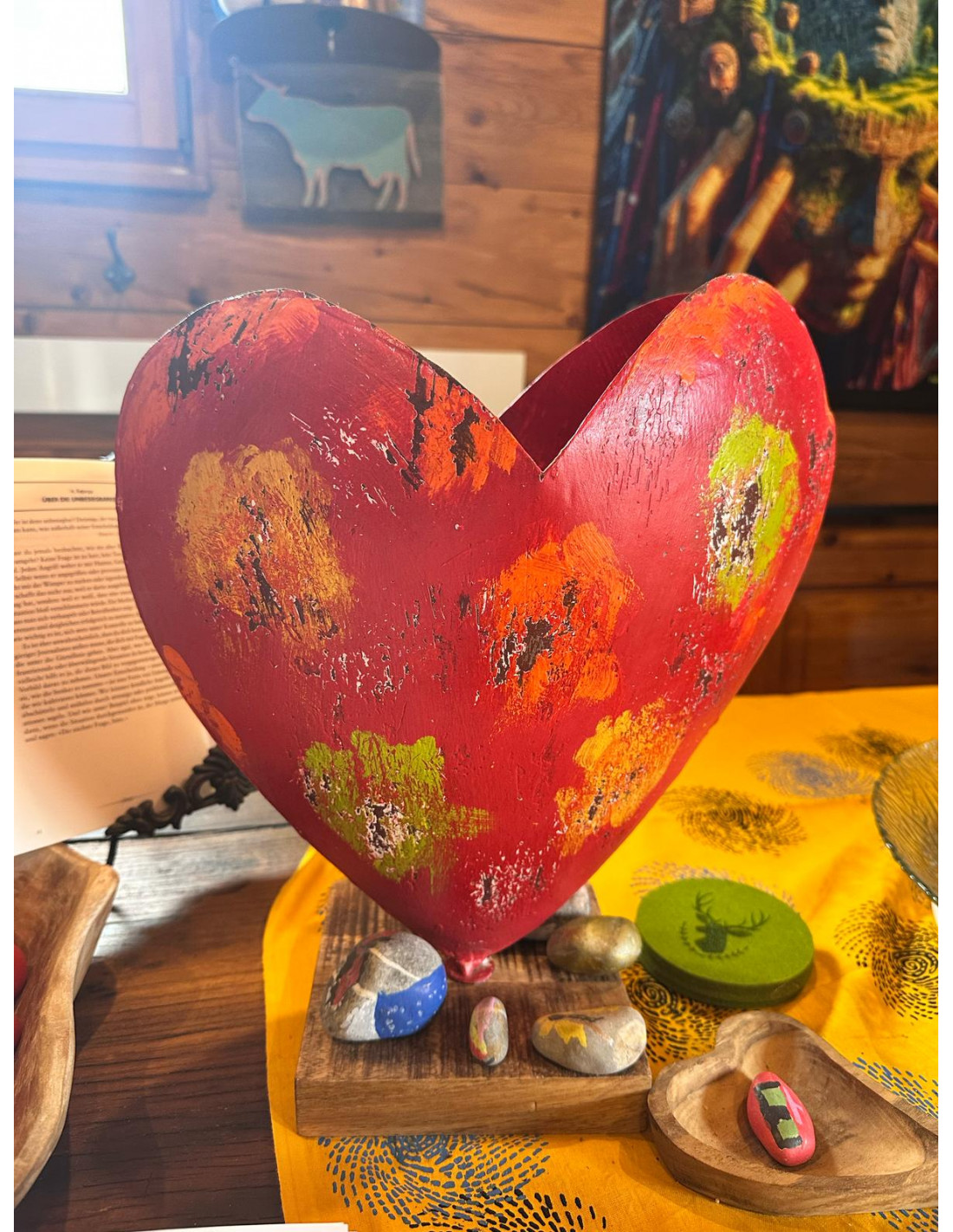 - Das Metallherz ist bunt bemalt