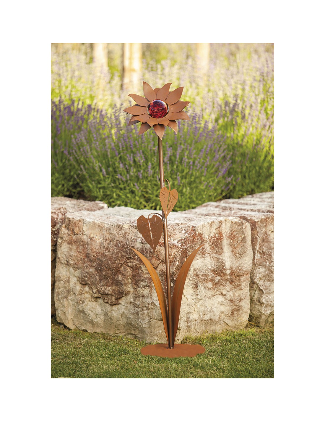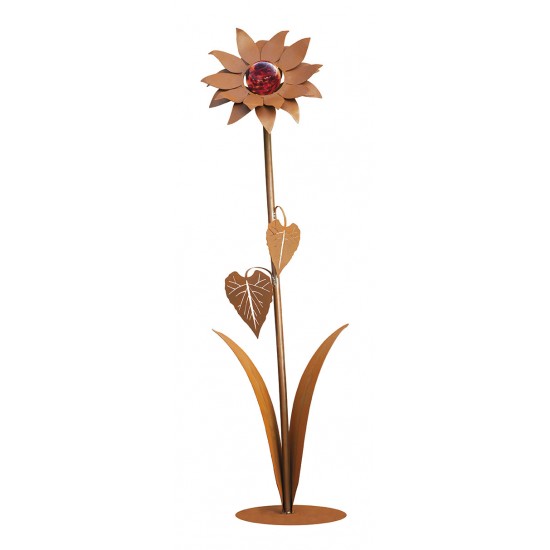Kleine Edelrost Sonnenblume mit roter Glaskugel