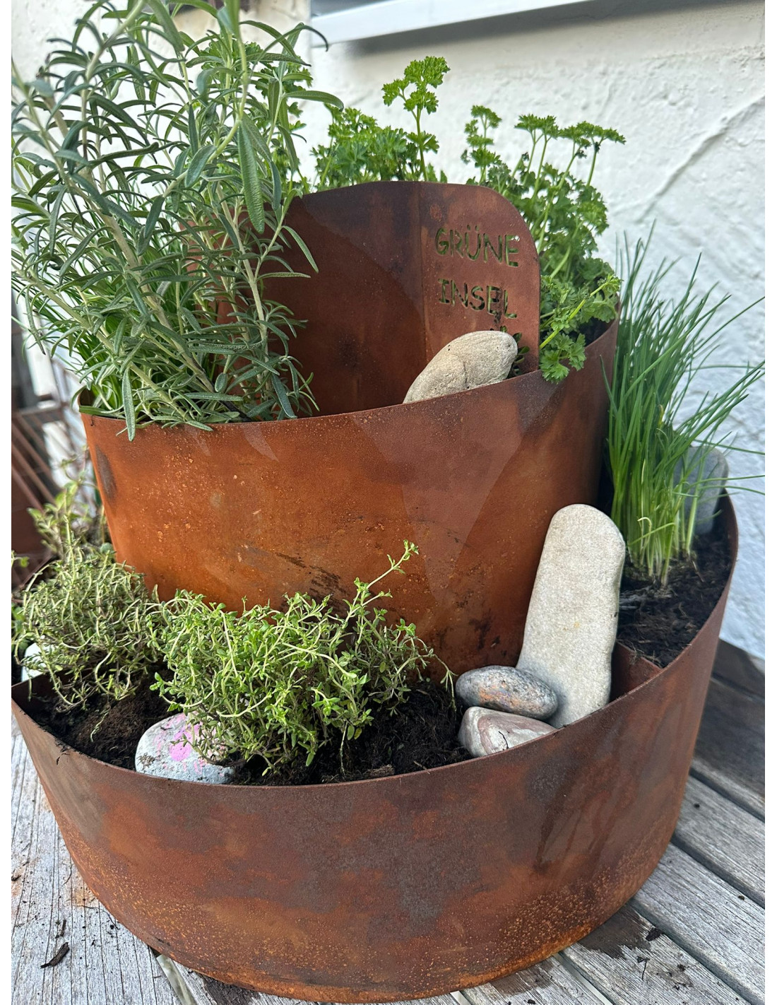 Kräuterschnecke aus Metall - Grüne Insel - Ø 50 cm - Edelrost Kräuter Spirale