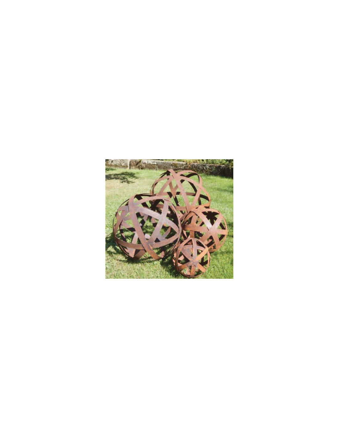 - schöne Dekokugel mit zusammengeschweißten Belchbändern als Streifenkugel mit Edelrost Patina