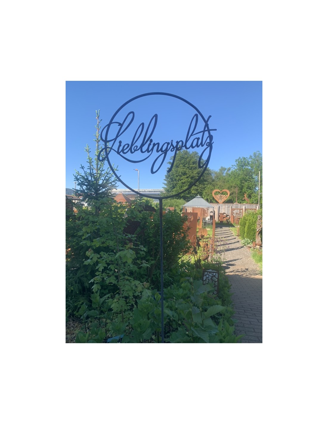 Lieblingsplatz Schriftzug im Ring aus Metall als Gartendeko Rost für besondere Stellen in Deinem Garten