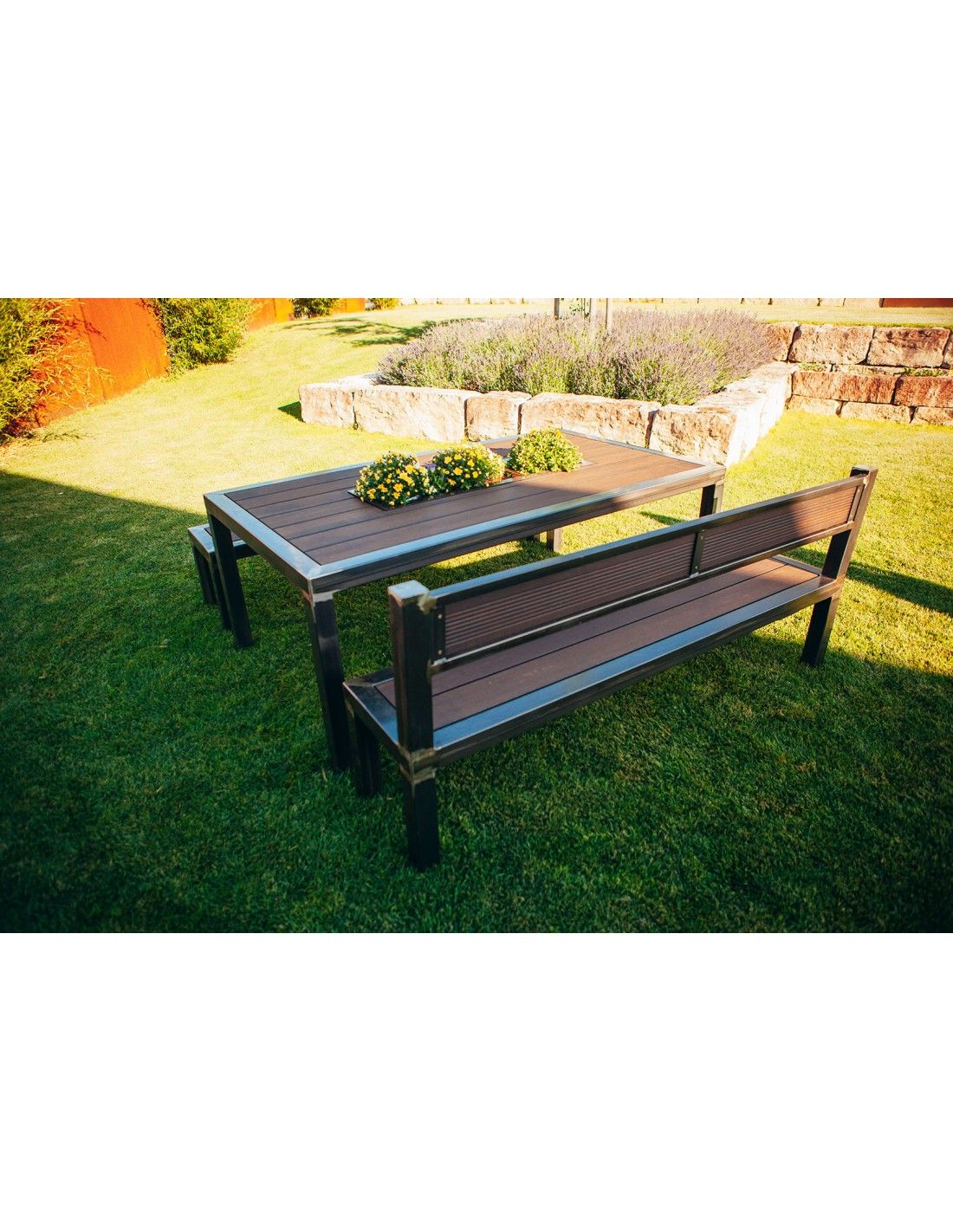 Metall Gartenbank mit Bambusholz - ohne Lehne - Länge 200 cm