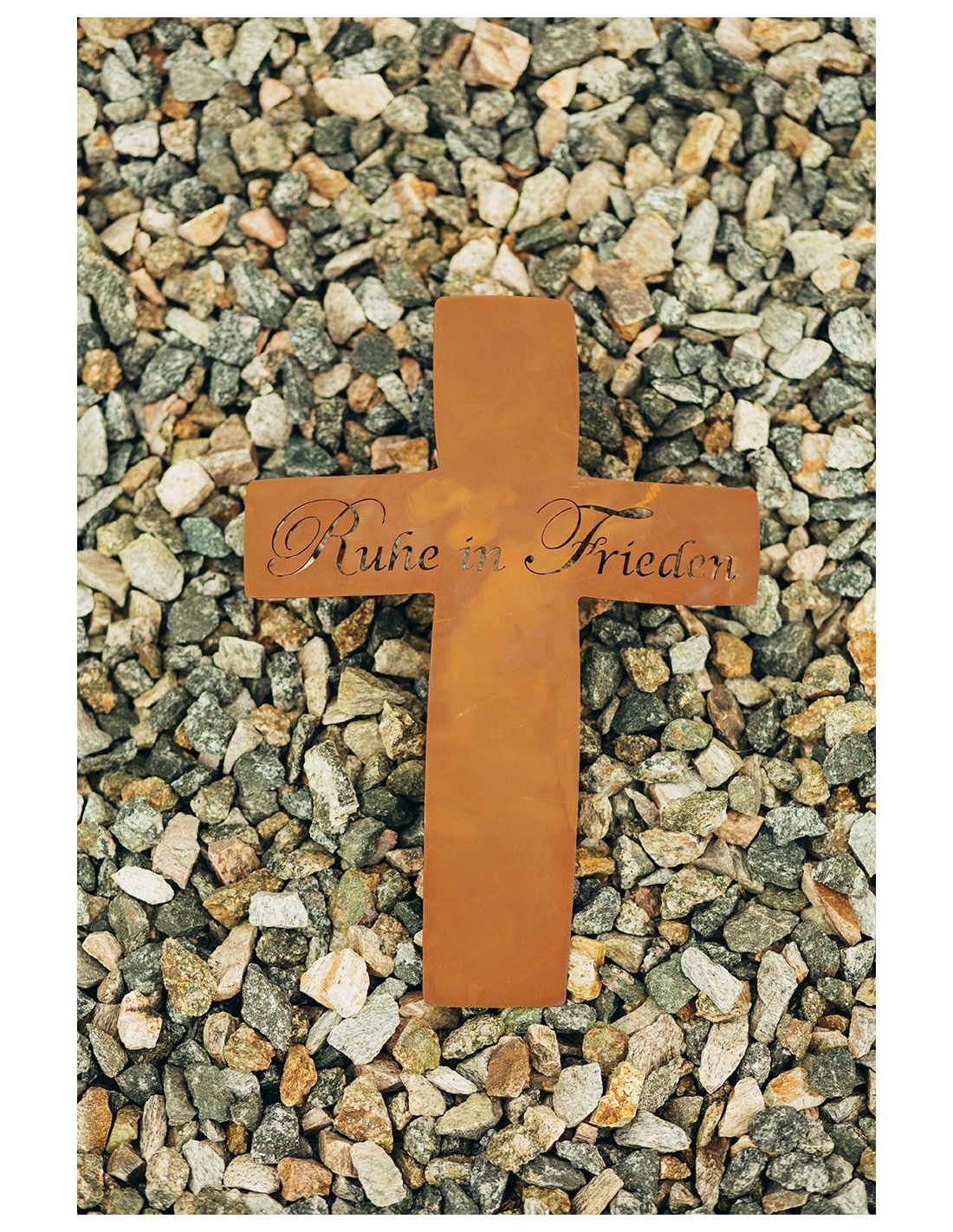 Allerheiligen Grabkreuz aus Edelrost mit Schriftzug - Ruhe in Frieden