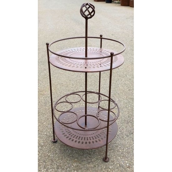 Massiver und dennoch filigran süßer Beistelltisch aus Metall für den Garten mit Halterungen für Weinflaschen, Bierflaschen, etc.