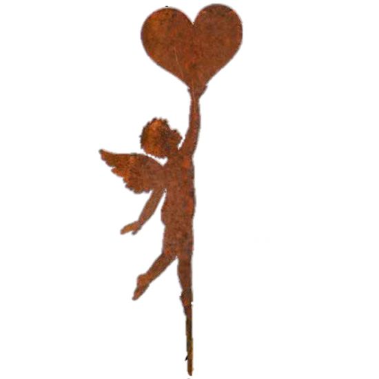 Engel - Putte mit Herz in der Hand - Gartenstecker - Höhe 35 cm - klein