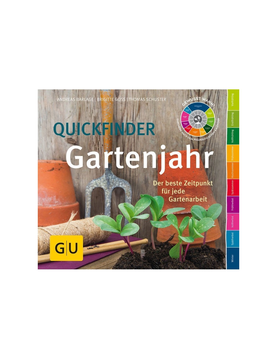 Erfolgreich gärtnern ist kein Hexenwerk. Der grüne Daumen ist neben der richtigen Technik vor allem eine Frage des richtigen Zeitpunkts. Gewusst wann, lautet die Devise! Da das passende Timing von Region zu Region sehr unterschiedlich sein kann, orientiert sich der Quickfinder Gartenjahr an den phänologischen Jahreszeiten. Ob säen, pflanzen, vermehren oder schneiden: Hier sehen Sie auf einen Blick, welche Gartenarbeiten übers Jahr hinweg im Zier- und Küchengarten anstehen. Anschauliche Bildfolgen zeigen an vielen Stellen, wie man die Gartenarbeiten am besten ausführt. Darüber hinaus beantworten Die GU-Gartenexperten häufig gestellte Fragen und verraten bewährte Tipps und Tricks aus ihrer täglichen Praxis. Der Serviceteil des Ratgebers umfasst ein Glossar mit Fachbegriffen, Tabellen mit empfehlenswerten Sorten sowie Kalender mit Blüte-, Aussaat-, Pflanz- und Erntezeiten. Der perfekte Jahresplaner für Ihre Gartenarbeit!