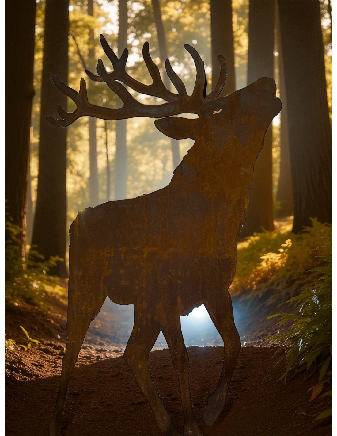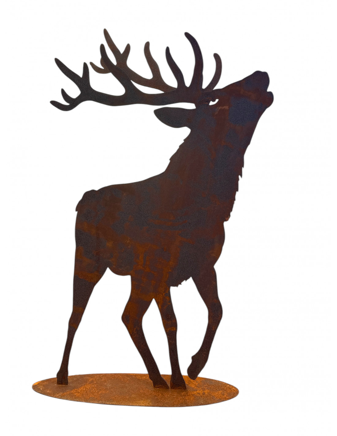 Röhrender Hirsch mit doppeltem Geweih auf Platte - Höhe 120 cm
