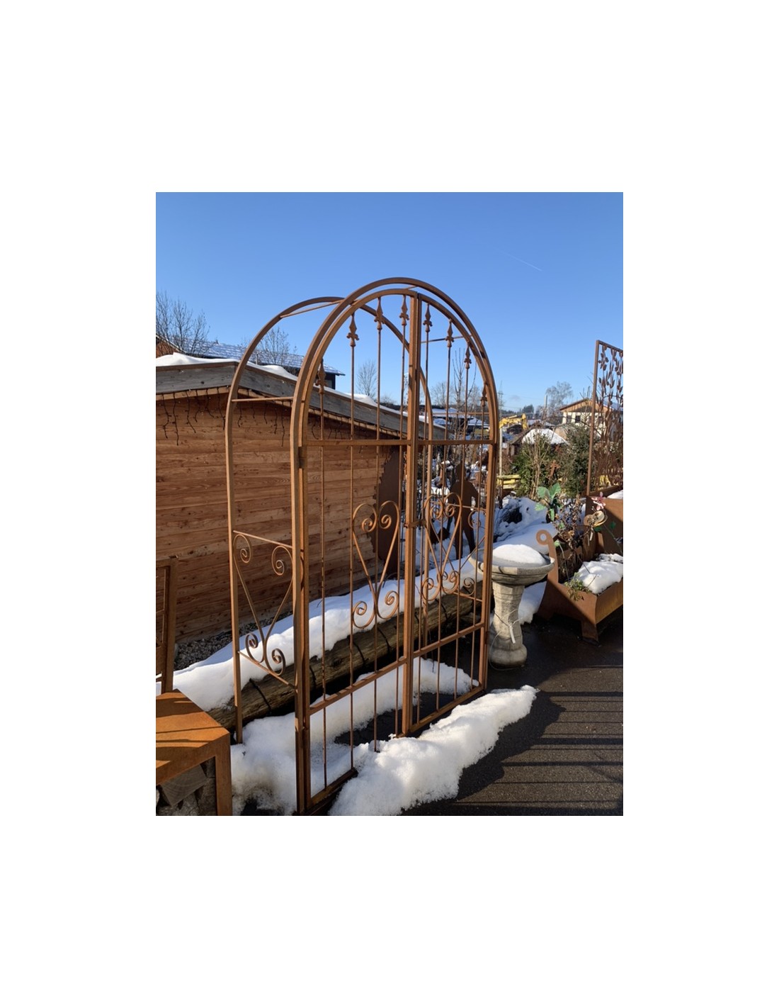 Rosenbogen mit Türe - zweiflügelig Breite 125 cm Höhe 200 cm, edelrost