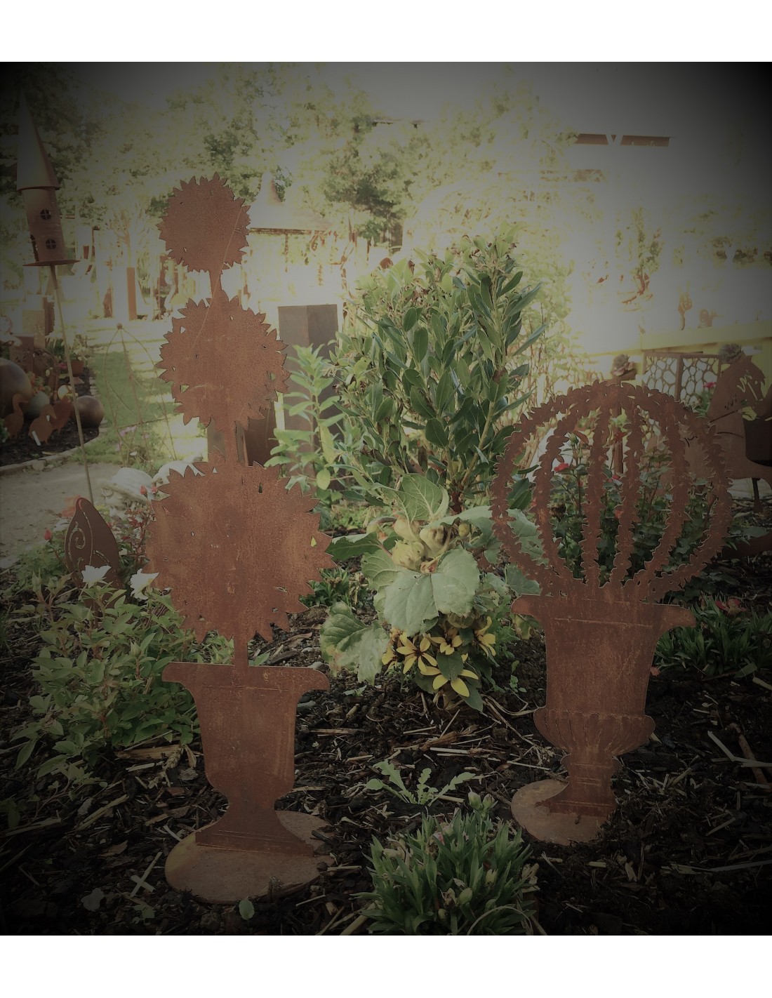 Rost Amphore mit Lorbeerbäumchen auf Standplatte Höhe 60 cm