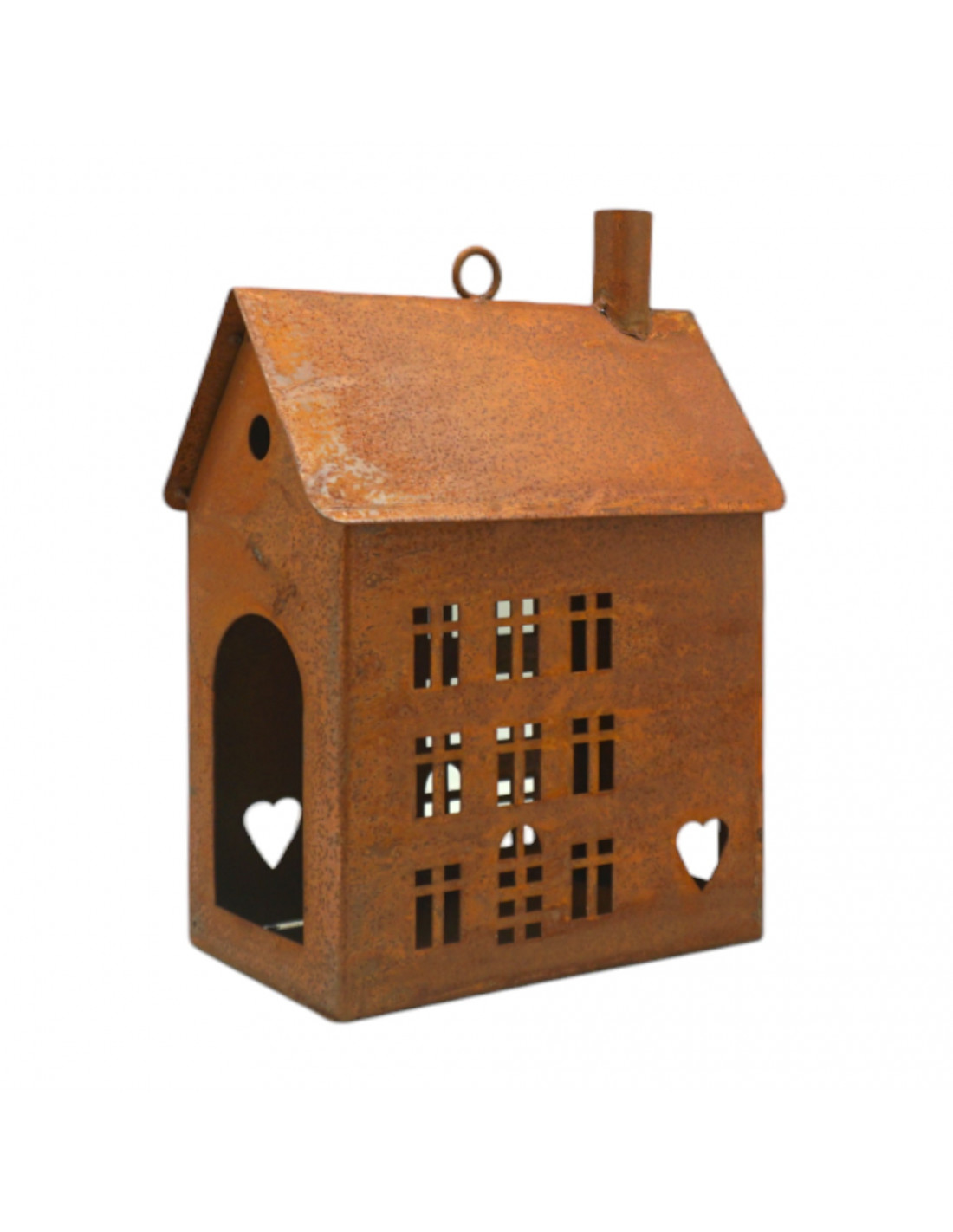 Rosthaus Windlicht mit Herzchen - zum Hängen - rechteckig - klein 20 x 25 cm