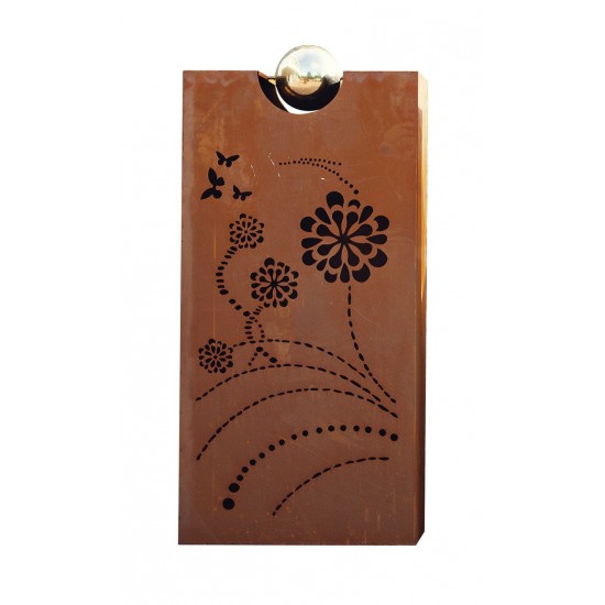 Rostsäule Rhombus mit Blumenmuster & Edelstahlkugel