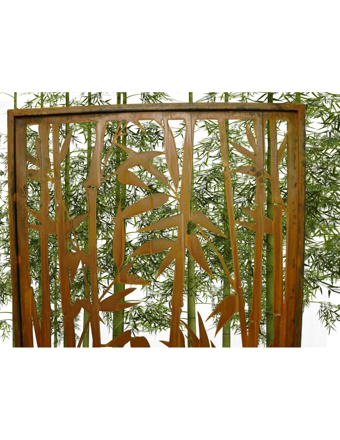 • Große Sichtschutzwand für japanische Gärten. Statt einer echten Bambuspflanze können Sie mit dieser Metallschutzwand gezielt Blicke lenken. Durch die offene Struktur wird der gewünschte Bereich wie bei einem Raumteiler getrennt, ohne die Blicke komplett zu versperren.