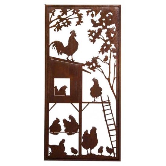 Sichtschutzwand Hühner - Hahn auf dem Dach - Höhe 200x100 cm