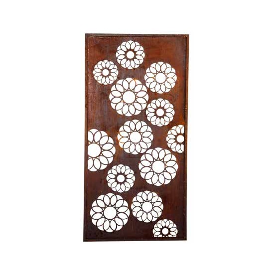 Privatsphäre und zauberhaftes Ambiente verleihst du deiner Terasse oder deinem Garten mit der Sichtschutzwand aus Metall mit Blumen und Kreisen