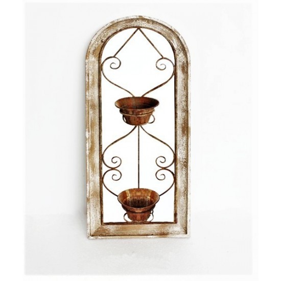 Deko Spiegel Rostoptik mit Antik-Finish Shabby Chic inkl. zwei Blumentöpfe Höhe 93cm