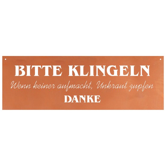 Spruchtafel - Bitte Klingeln. Wenn keiner aufmacht, Unkraut zupfen. DANKE