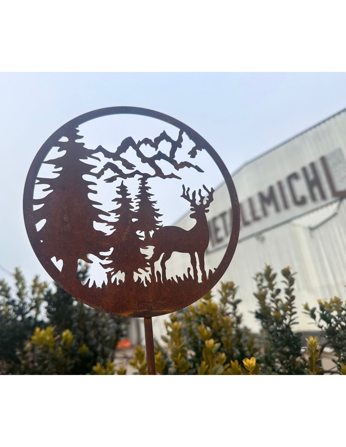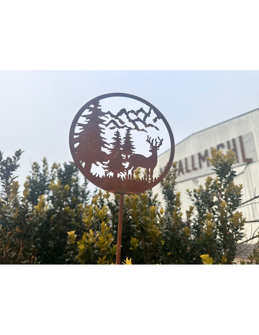 Gartenstecker Hirsch mit Berge Ø 18 cm - Höhe 97 cm - klein
