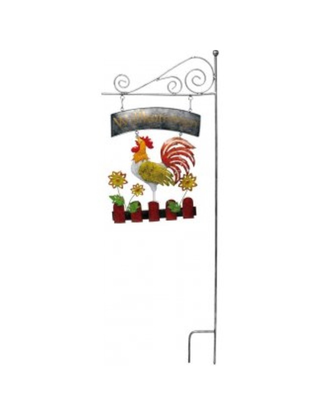 Gartenstecker - Willkommen - mit Gockel bunt Höhe 119 cm - Stecker aus Metall