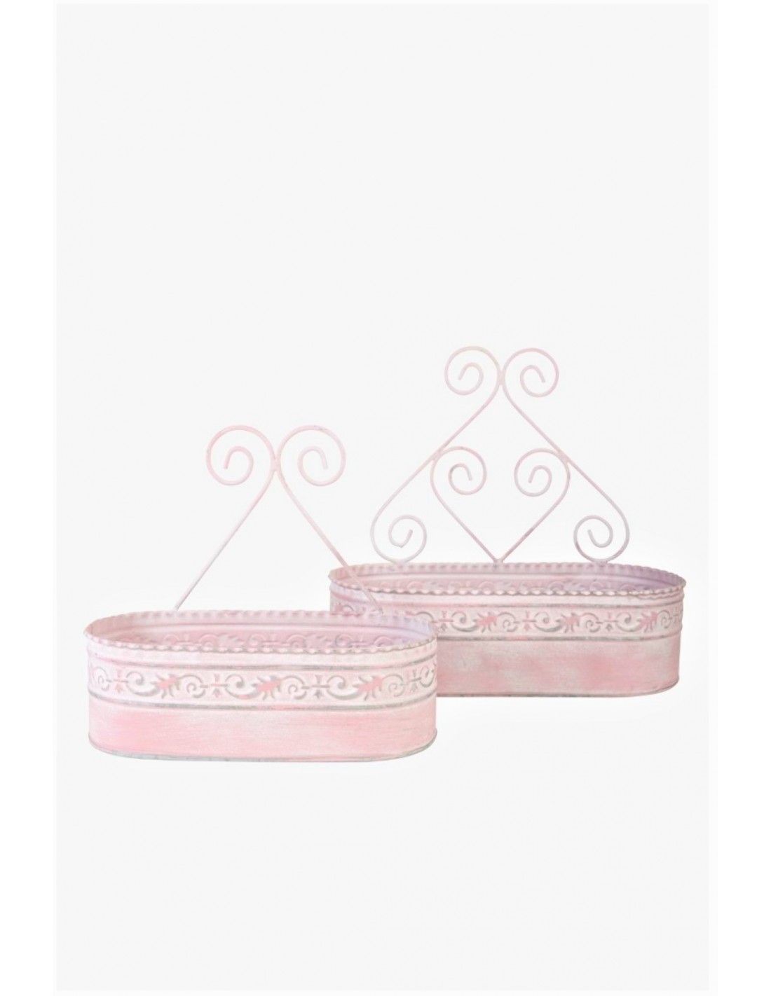 Diese verspielten Blumentöpfe im shabby Chic Look werden als 2-teiliges Set geliefert. Du kannst die ovalen Töpfe hängen oder stellen. Deiner Kreativität sind bei der Bepflanzung keine Grenzen gesetzt - ob für Kräuter oder andere hübsche Blumen - sie werden deine Pflanzen richtig in Szene setzen. Das zarte Rosa wird dich verzaubern.