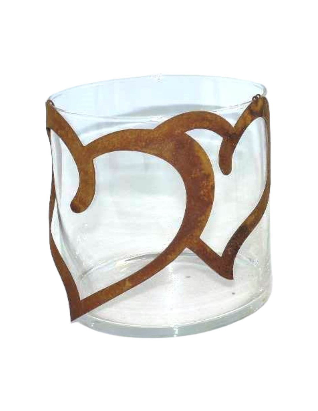 Glas Windlicht mit halbrundem Edelrost Herzen - 15 x 15 cm - klein